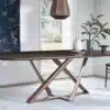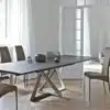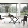 Table fix or with extensions, with lacquered Metal frame. Top in Solid wood, heritage walnut Solid wood, Veneer wood, Veneer wood with solid edge, lacquered Wood, Glossy glass, Velvet matt anti-scratch lacquered glass, Superceramic or SuperMarble.