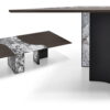 Taking a simple approach in Millennium, Carollo has created a design ideology based on hope that rewards something beyond the simple. It is about material contrast and pairings. It is about rewarding simplicity rather than taking from it. Featuring a marble top paired with wood, the top is a contrast to minimalism but respectful of it. The simplicity does not stop there. In the construction of its legs, metal with marble contrast, to give a solid and elegant finish to a mesmerising design.