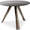Milos, ceramic or wooden table with round top and tubular steel legs.