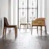 Cold polyurethane foam was injected into this chair’s structure, and that makes it exceptionally comfortable. Angelo Tomaiuolo’s design is refined and elegant, both in the arm-free, and in the regular version. The leather, eco-leather, grain leather, or Nubuk leather upholstery are completed by the precious creasing.