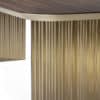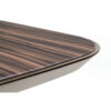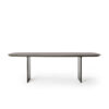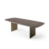 Dining table with legs in extra-clear transparent glass or in bronze or smoked-grey glass with London engravings. Bevel Wood top in Canaletto walnut/Canaletto Henné or with edges in Bronze (100M) finish and cover in Marmoreflex/Legnoreflex.