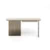 Desk/writing desk with bases in bronze or smoked glass featuring London engravings. Top available in Bevel Wood in Canaletto Walnut or Canaletto Henné, Bevel Wood Marmoreflex/Legnoreflex, and drawer with metallic profiles in 100M Bronze.