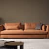 The Montecarlo linear sofa is a harmonious and welcoming sofa, with a metal plate that envelops it like an embrace.