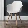 Chair, chair with arms, swivel chair, swivel castor chair with lacquered Metal or Solid wood frame. Seat and back in Polypropylene.