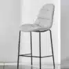 Barstool with lacquered Metal frame, triangular legs and round section. Shell in polypropylene upholstered and covered on the front in Premium tessuto Nordic, Pure Virgin Wool, Kvadrat Field fabric, Kvadrat Coda fabric, Premium Nappa Leather.