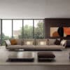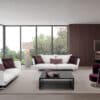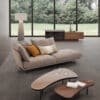 This sofa features an extraordinarily comfortable high backrest created by a metal frame that encompasses the sides, back and base of the sofa. A special oval-shaped foot raises the sofa, giving it a lighter appearance. This fashion-led sofa features cushions in different textures, designs and seams with inserts made from other materials. Custom designed special embellishments showcase and emphasise each and every cushion.