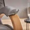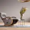 Comfortable Model 8533 CUMULY chair with a wooden swivel ring for pure relaxation If you are looking for a comfortable recliner that impresses in all respects visually, the himolla CUMULY chair with its wooden swivel ring is the right choice for you. The television and reclining chair is distinguished by its innovative design. It is a design that fits seamlessly into all furnishing styles and yet acts as a fabulous eye-catcher.