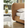 Noa is a sculptural bed, with organic volumes, inspired by rocks sculpted by the wind. The headboard is soft and voluminous and its simplicity reveals the three-dimensional effect accentuated by the piping present on the curved surfaces. The model is available in three versions with wooden feet and one with metal feet, with the possibility of choosing the most appropriate aesthetics and height from the ground. Noa is available with a fixed bed base or with a storage compartment. Available with fabric or leather covering