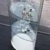 This showcase was made for those of you who are willing to extol both the case and what lays inside of it: curved glass and wood perfectly melt in Olivella, creating a combination of material and light. The empty spaces shine, thanks to the built-in LED light, and make this already refined showcase, even more elegant.