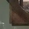 The Otello wall mirror blends two opposite shapes through a particular striped processing of the frame, embellished with a cannetè texture with oblique lines: the finishes of the ribbed glass in relief give three-dimensionality and enhance the mirror element, making it a unique design object.