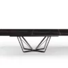 Dining table with iron base in Bronze, satin brass, dark brass, titanium finishing. Extendable top in Marmoreflex/Legnoreflex glass