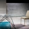Airy and bright, as imperceptible as a vision; this is the glass-topped Pegaso table. The transparency of the top reveals the elegant geometric arrangement at the meeting point of the legs, comprising slim metal rods that give the table an air of solidity and balance. This extraordinary design is the result of Riflessi’s constant search for style and shapes that convey a contemporary effect, brightness and fascinating precision to any environment.