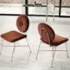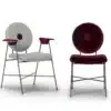 Chair and chair with arms in lacquered metal frame, upholstered and covered.