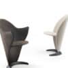 Chair with padded wooden frame and upholstered in leather or fabric. Base in Bronze, graphite or titanium finish. Optional armrests and quilting on the backside.