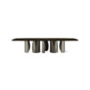 Dining table with bases in 10mm thick extra-clear curved glass with internal Bronze finishing. Top in MarmoReflex. Custom dimension: 400 x 140 x 74h cm