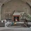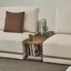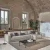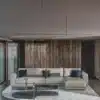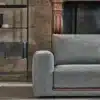 The rigorousness of the compact shapes contrasts with the softness of the padding and with the wide and comfortable seat. The metal rod finish that runs along the length at the base of the sofa is a precious detail of character with a contemporary style.