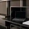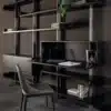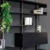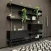 This bookcase is composed of a series of shelves that create movement, interrupting the continuity of the wall. In addition to the shelves, drawers of various sizes can also be added, so as to have more storage space inside the living