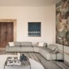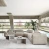 A sofa with soft and embracing shapes, where the manual movable back and the rich padding on the seat, enhance the comfort, giving multiple interpretations.