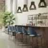 Low barstool with metal frame, seat and back upholstered and covered in Premium tessuto Nordic, Pure Virgin Wool, Kvadrat Field fabric, Coda Fabric and Premium Leather.