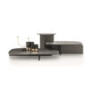 The three Polyura coffee tables are inspired by the Papilo sofa which they complement in an organic way. In an ideal arrangement, the largest tabletop emerges from under the sofa like a platform/coffee table. Nevertheless, it can of course be used in different ways. The shape of the tops and legs coherently complements its minimalist design. It’s available in three finishes: Eucalyptus, Grey wood and lacquered glass for the round table, three sizes and three heights.