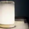 Table lamp floating glass white nuanced. Lacquered metal base.