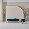 Ottoman with lacquered Metal frame, upholstered and covered in Premium tessuto Nordic, Pure Virgin Wool, Kvadrat field and Kvadrat Coda fabric, Premium Nappa Leather.
