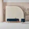 Bench with metal frame, upholstered and cored in: Premium Bouquet fabric, Nordic fabric, Pure Virgin Wool, Supreme Velvet, Kvadrat Field fabric, Kvadrat Coda fabric and Premium nappa leather.