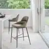 Barstool with metal frame, upholstered and covered shell in Premium tessuto Nordic, Pure Virgin Wool, Kvadrat Field fabric, Coda fabric and Premium Leather.