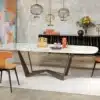 The Reverse table is embellished with the new artistic glass finish in two variants: Crystal Calacatta and Galaxy Black & White with a 25 mm bevel.