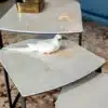 Rim, a triptych of stackable coffee-tables with a metal structure and also available with the addition of porcelain stoneware tops.