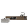 A multifunctional piece of furniture available in two sizes. Elegantly presented in canaletto walnut with different colour finishes and made more sophisticated if equipped with tops and fronts in ceramic. It can be enriched by a removable and reversible cubic container element.