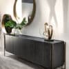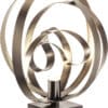A lampshade which appears to be light and fluid but is actually sturdy and firm, made in curved steel forming a ribbon embracing an ideal sphere. The use of the bronze finish creates bright and delicate reflections that are emphasised when the light is on. A soft design which makes this sculpture-lamp ideal for any type of setting with an international look.