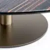 Side and low tables with top in MarmoReflex or LegnoReflex. Metal base in Bronze finish or in satin brass, dark brass, titanium finishing.