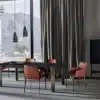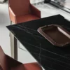 Chair and chair with arms, with metal or Solid wood frame, upholstered and covered in hideleather.
