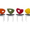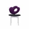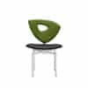 Chair with the base in solid wood painted in matte or transparent lacquer aniline or with a chromed swivel base. Eight different back-rest designs characterise the chair, covered in fabrics or leather from our collection.