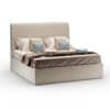 Bed with padded headboard and bedsides, upholstered in fabric or leather. Headboard with quilting.