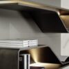 Interlocking modular bookcase in matt lacquered wood or in Henné oakwood or in the combination of shiny ebony with shelves in satin brass finish.