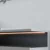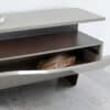 Sidebaord in shiny lacquered wood or in Henné oakwood. Equipped with 1 folding door and 1 or 2 doors. Open section in same finish as the structure or in satin brass or titanium finish, in Canaletto walnut or covered in lacquered or etched lacquered glass or in smoked mirror. Optional LED lighting.