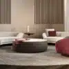 Armchair with wooden structure padded with polyurethane foam and seat cushion in crushproof polyurethane. Metal legs in Bronze, Brass or Titanium finish. Upholstery in all fabric’s categories or in leather.