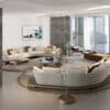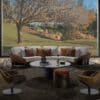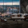 Sofa with wooden structure padded with polyurethane foam. Seat cushions in polyurethane. Patented back cushions in feather with polyurethane insert internally composed by two lift layers to grant different comfort levels.
