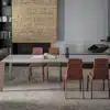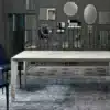 Table with extensions and lacquered Metal frame. Top in melamine, Anti-scratch Unicolor, Veneer wood, Glossy glass Velvet matt anti-scratch lacquered glass, SuperCeramic and SuperMarble