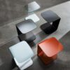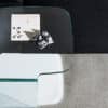 Bent glass coffee table lacquered mono or two-tones or in extralight glass with lacquered bottom part.