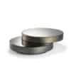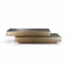 Coffee table with double top, one fixed and other sliding. Structure in brass 104M, dark brass 105M or Titanium 101M. Plinth in bronze 100M. Both tops or in MarmoReflex/LegnoReflex or in smoked mirror glass.