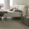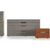A bedroom set characterised by the linearity of the elements, which stands out, however, in the special graphic design of the recessed handle, a detail that makes the drawer fronts dynamic. The handle can either match the front or contrast with it to enhance its presence and create interesting colour plays. There are dressers, bedside tables, and also a practical six-drawer tallboy, ideal for optimising vertical space.