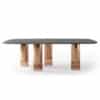 Dining table with base composed by Murano glass cylinders transparent, red, blue, aquamarine, amber, tobacco or amethyst or in the shaded sputtering finishing copper, bronze or silver. Top available in transparent glass, Marmoreflex or Legnoreflex