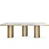 Dining table with base composed by cylinders in satin finish brass, dark brass or titanium (101M). Wooden top in matching finish 40mm thick with glass cover in Marmoreflex/Legnoreflex