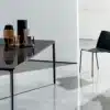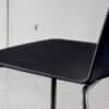 Stackable chair with black, clay or mocha embossed metal base. Available with body in natural or stained eucalyptus, with or without cushion. Also available in the completely covered version, leather or Kvadrat fabric.