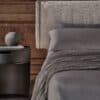 A soberly designed headboard ads an inviting embrace to a bed with compact dimensions. Lightweight and minimalist are the distinguishing qualities of Skin.