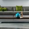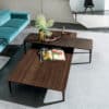 Coffee table with aluminium legs and structure, various finishes. Top available in different measures, shapes, materials and finishes.