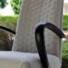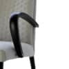 Chair with internal metal structure and upholstery in leather or fabric with Emerald quilting on the backrest. Upholstered legs or in wood in shiny nero beluga, Oakwood Beluga or Bronze finish. Optional armrests in Oakwood Beluga